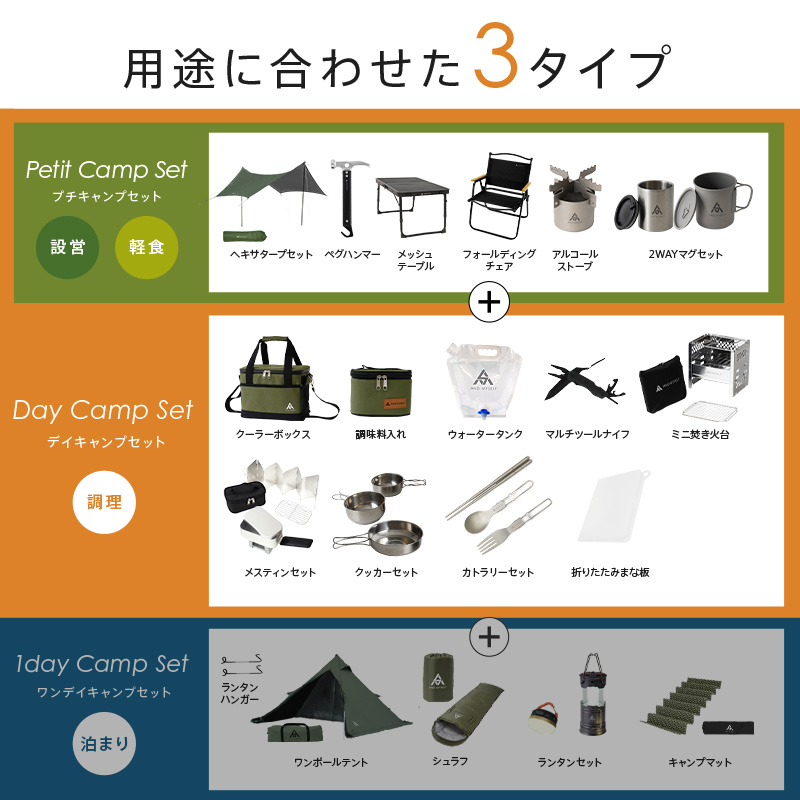 「キャンプ セット 一式」の画像ギャラリー、詳細は各画像をクリックしてください。